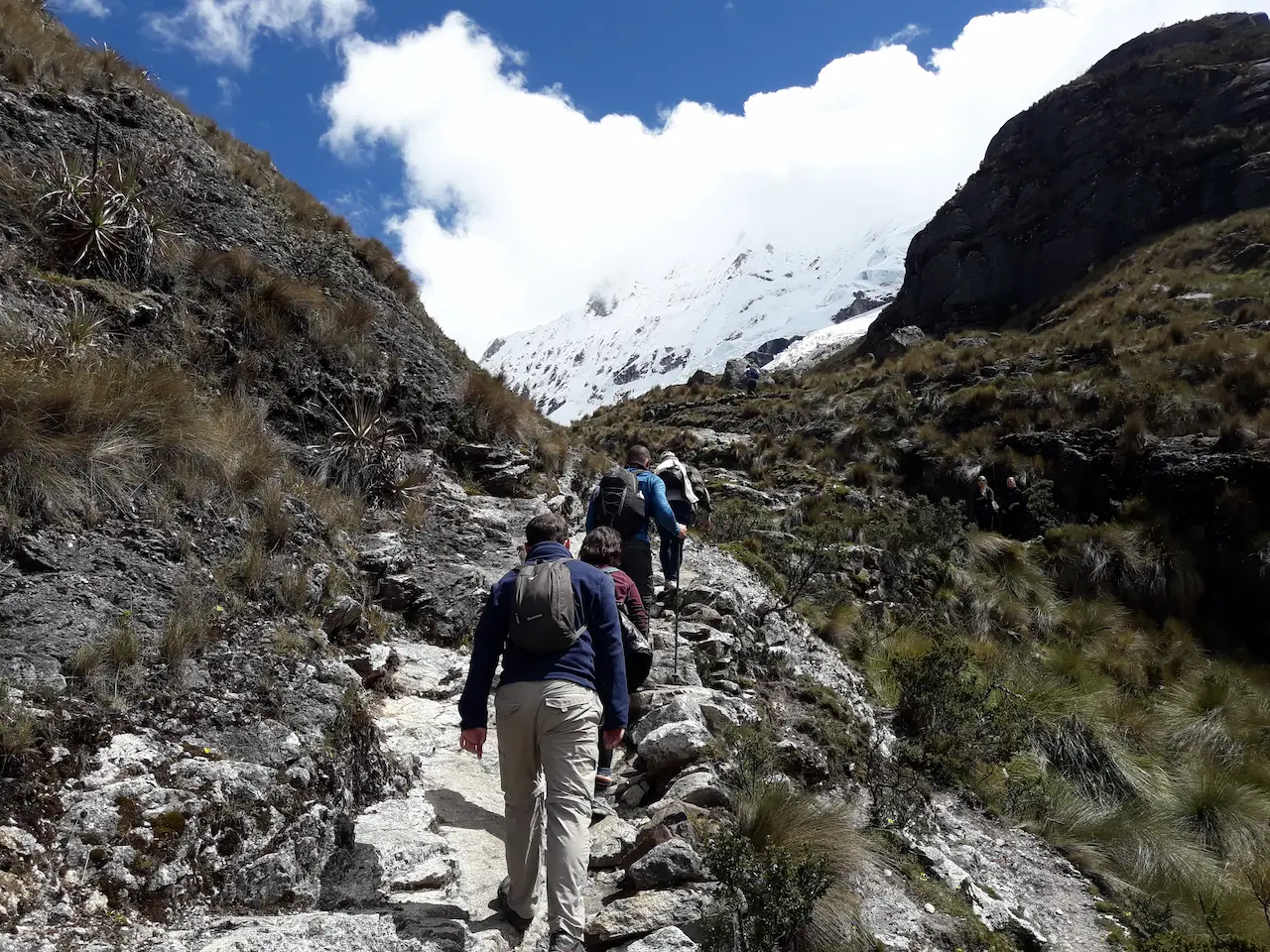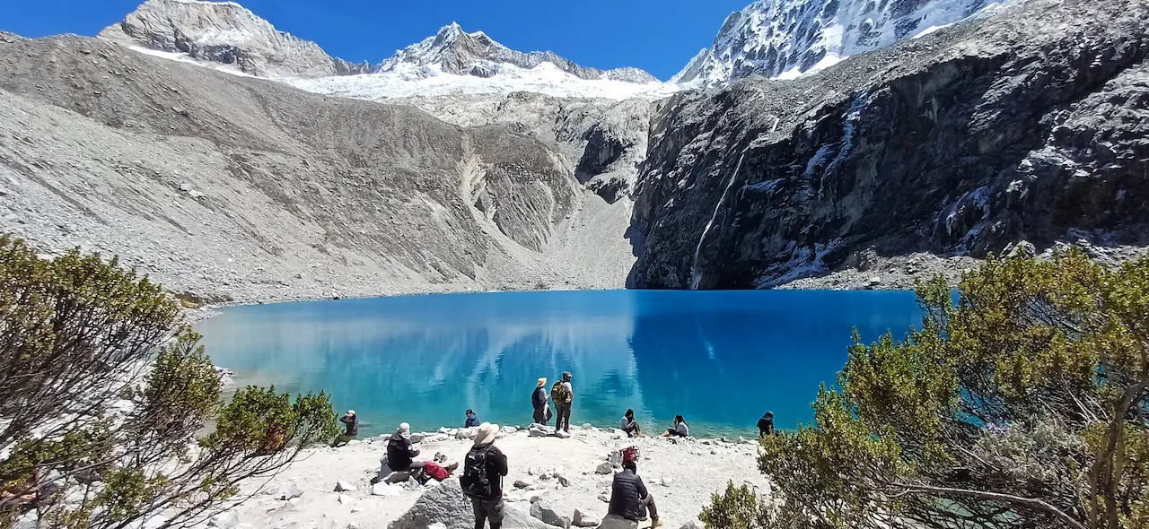 Departure (5:00 am) We will begin the pick-up from your hotel (urban area) with our transport and we will transfer to the north side of Huaraz towards Yungay 2,550 m. Then we will ascend to the town of Huashao, stopping for 30 minutes for breakfast, then we will arrive at the Huascaran National Park control, we will pay the entrance fee (National S/ 15.00 and Foreign S/ 30.00 for a day visit). Continuing we will arrive at Chinancocha Lagoon, stopping for 10 minutes to take photos and then we will arrive at Cebollapampa from where the trekking begins, we will walk for 3 hours to Lagoon 69 (7 km) observing beautiful natural landscapes, waterfalls and high mountains of the Cordillera Blanca such as Huascaran, Chopicalqui, Chacraraju, Yanapaccha and Pisco. The maximum altitude we will reach is 4,604 m at the same lagoon 69, where we will take a break to rest, eat, and take photographs. Then, we will return to ceboladapampa along the same path for a 2:30-hour descent, where our transportation will be waiting to take us to Huaraz for a 3-hour trip.