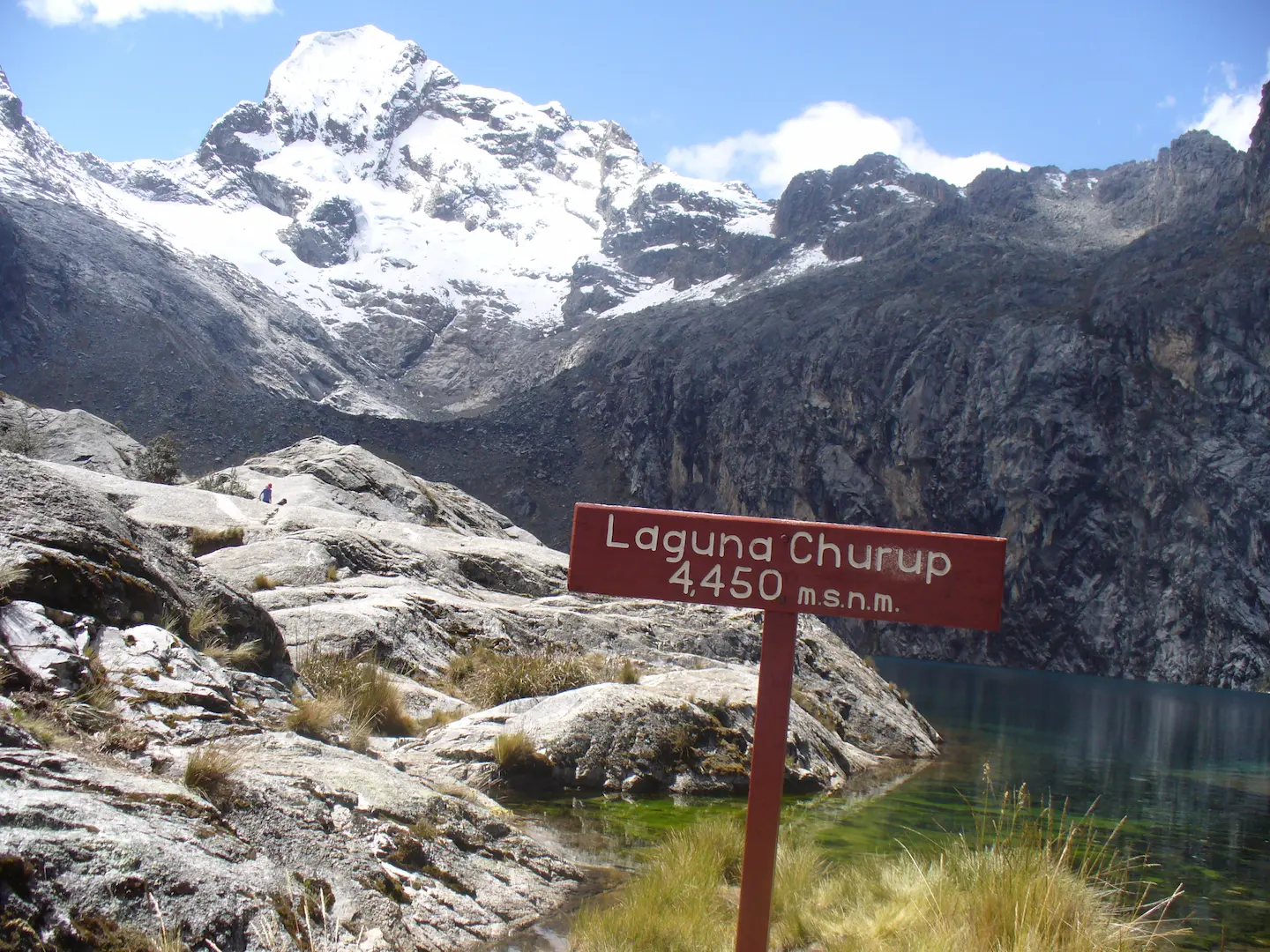 Departure (7:00 am) We will begin the pick-up from your hotel with our transportation and head east to Huaraz, heading to Pitec, where the Huascaran National Park control is located. We will pay S/. 15.00 for nationals and S/. 30 for foreigners for the day visit. From here, we will begin our ascent along a well-marked trail and combine it with a rock climb equipped with ropes before reaching Churup Lagoon. The maximum altitude we will reach is 4,450 m at the same lagoon, where we will take a break to eat and take photos. We will return along the same trail to our transportation and then to Huaraz.