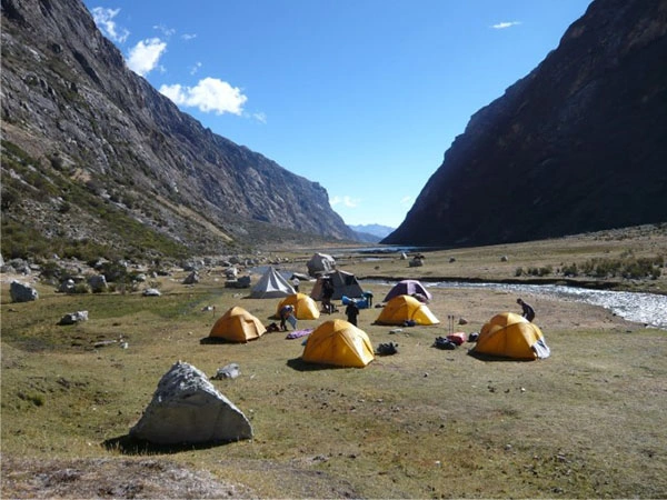 This day we will continue our trek to base camp, passing by the beautiful Ichiccocha and Atuncocha lagoons, appreciating some of the surrounding peaks such as Artezonraju, Taulliraju, and Quitaraju, before arriving at base camp. (B, L, D)